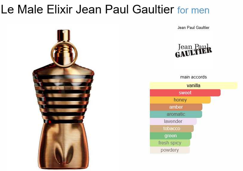 Le Male Elixir هوس سوزاندن را القا می کند و حواس شما را دیوانه می کند. میل سوزان با نت های مقاومت ناپذیر اسطوخودوس تازه، دانه تونکا گرم کننده و بنزوئین ملایم گسترش می یابد.